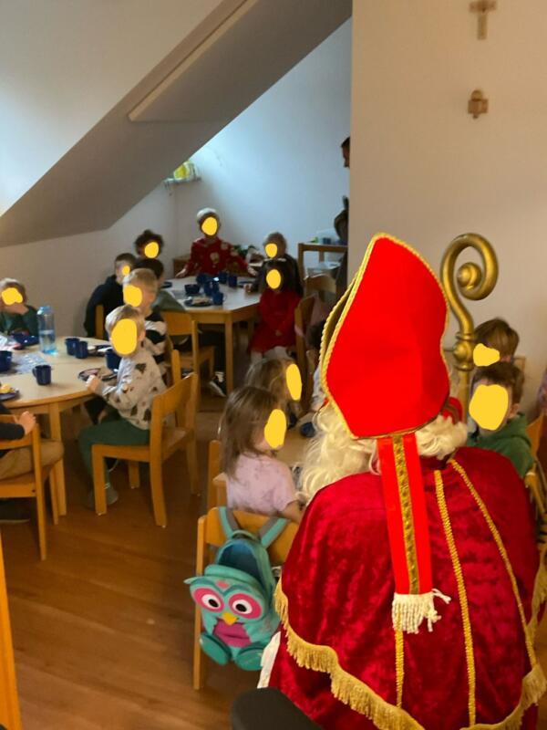 In voller Montur mit Mitra, seinem Bischofsstab sowie einem großen Sack im Schlepptau ging er von Gruppe zu Gruppe, um jedem Kind ein Nikolaus-Säckchen mit Nascherei und Obst zu überreichen. Bei selbstgebackenen Keksen und Kakao saß man gemütlich zusammen, und so manche Kinder trauten sich sogar, mit dem lieben Nikolaus ins Gespräch zu kommen. Schöne Erinnerungsfotos mit dem Nikolaus durften natürlich auch nicht fehlen.