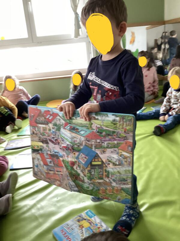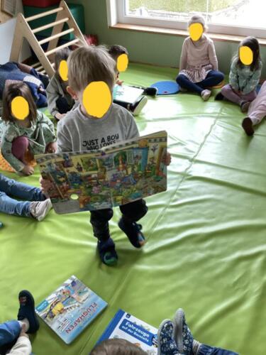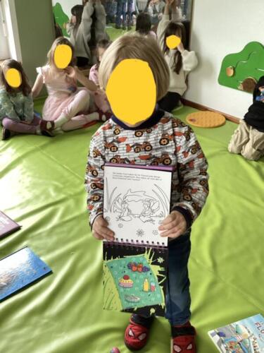 In allen 5 Gruppen konnten sich die Kinder im Rahmen des Sitzkreises jeweils ihre Bücher untereinander vorstellen und zeigten stolz, was sie mitgebracht hatten.